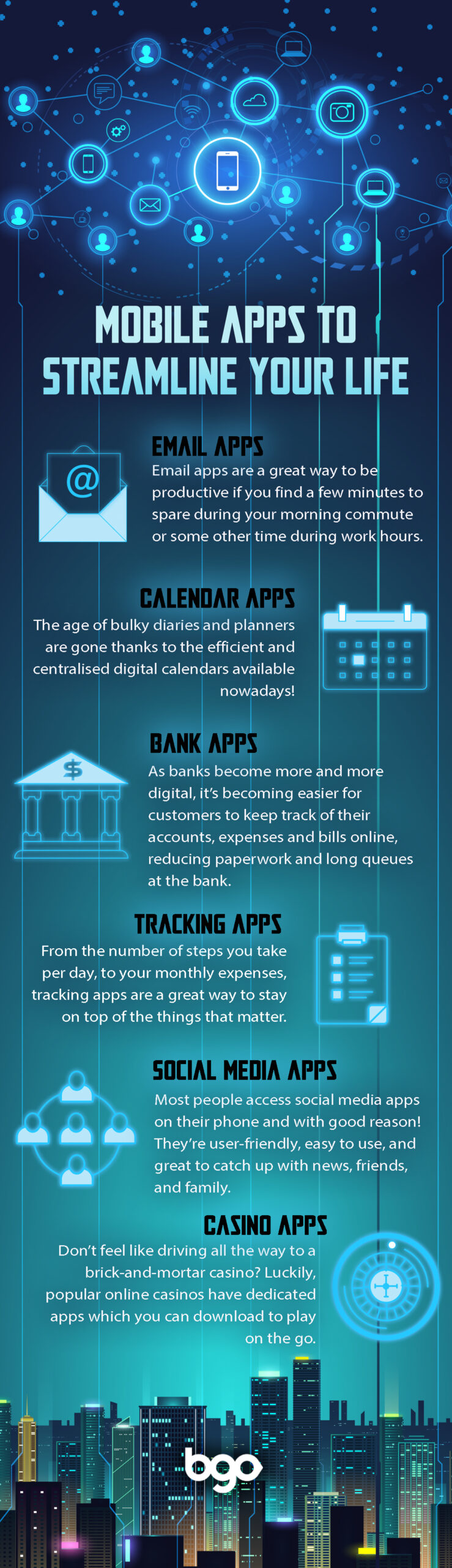 So if you need some fresh app ideas to make the most out of your time, we’ve got you covered with our infographic featuring 6 of the most useful apps available. Our list includes apps that help you complete work tasks on the go – such as email apps and calendar apps that keep track of meetings for you. But we also consider apps that will help you relax and unwind.